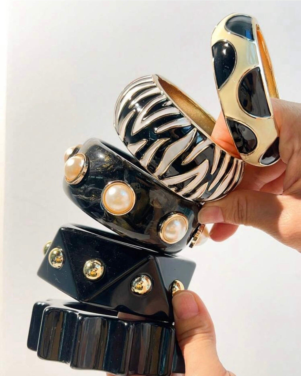New Deadstock Black and White Resin Bangles Geometric Bracelets set of 4