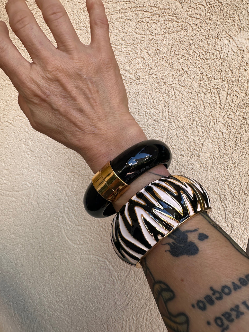 Deadstock Statement Enamel Black & Gold Bangle Set (Set of 2) New with tags